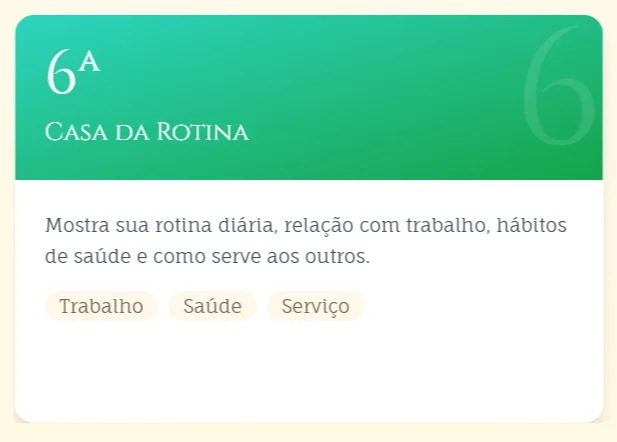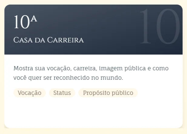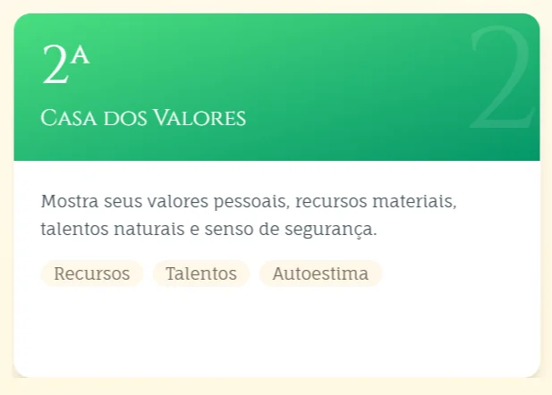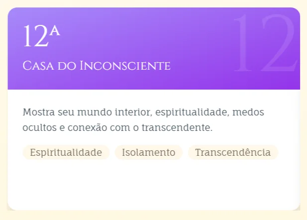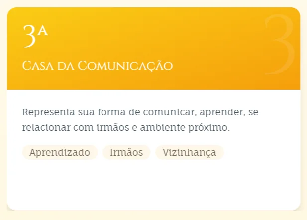 As casas dividem seu mapa em áreas da vida. Cada uma representa onde as energias dos planetas e signos se manifestam.